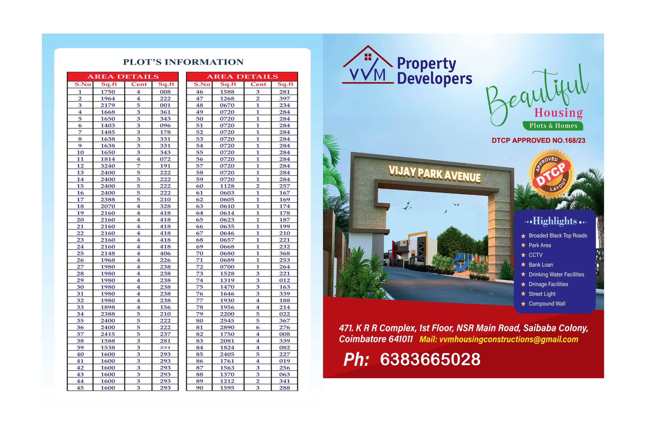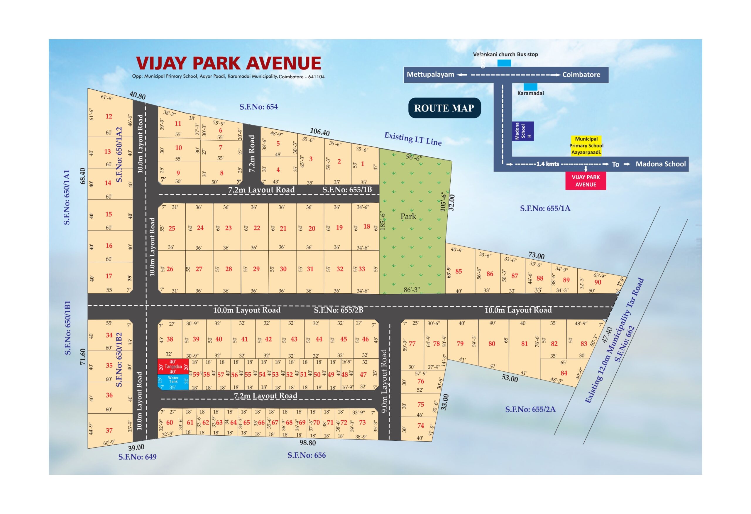 Vijay Park Avenue by VVM Property Developers is a premium plotted development in the heart of Teachers Colony, Karamadai. Carefully planned and government-approved, this community offers the perfect environment to build your dream home in a calm, green, and well-connected neighborhood.